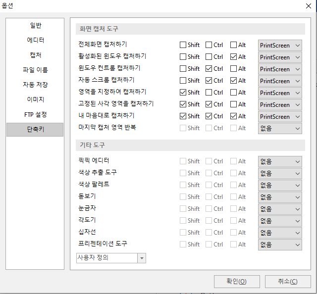 * 만약 위의 기본 단축키가 마음에 들지 않으면 사용자 마음대로 단축키를 바꿀 수 있게 커스터마이징 기능을 제공 하고 있습니다.