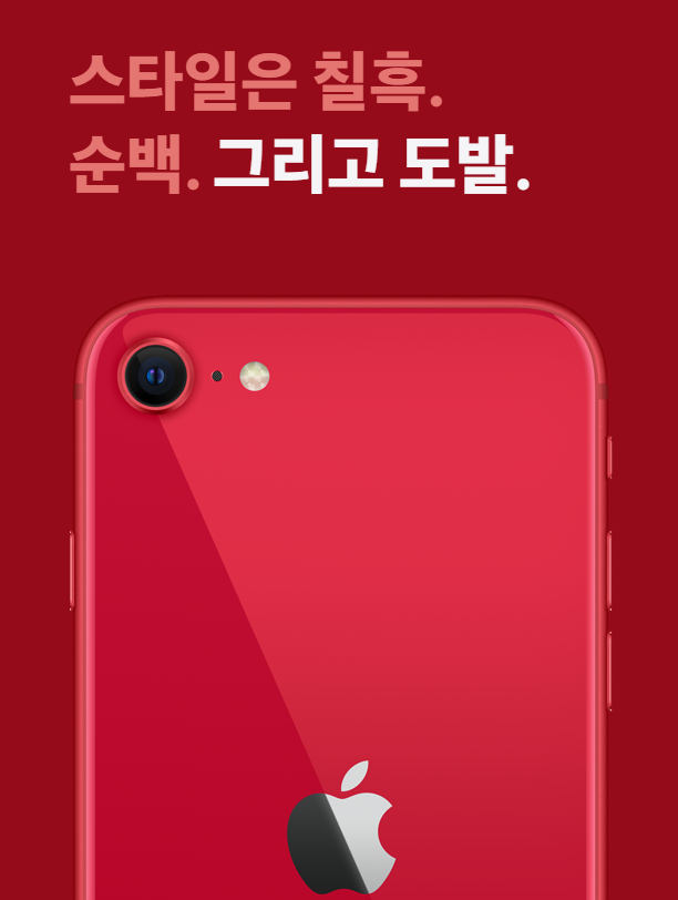 아이폰SE는 화이트와 블랙 그리고 레드 색상을 지원합니다. 이중 레드는 모델이 판매될 때마다 에이즈 퇴치를 위한 범세계 기금에 기부금이 직접 전달됩니다. 아이폰SE는 뒷면이 글라스라 모든 색상이 한층 더 고급스럽게 보일 것 같습니다.